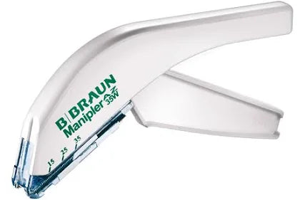 Das leichte und handliche Manipler® AZ Hautklammergerät von B. Braun dient dem schnellen und sicheren Verschluss von Hautwunden und garantiert dank seines durchdachten Designs nicht nur eine hohe Griffsicherheit, sondern gewährleistet außerdem freie Sicht auf die Wundränder.
